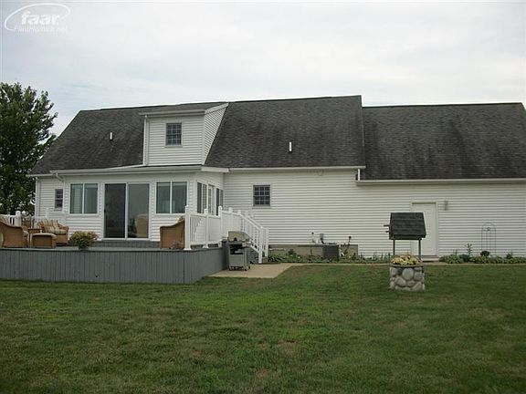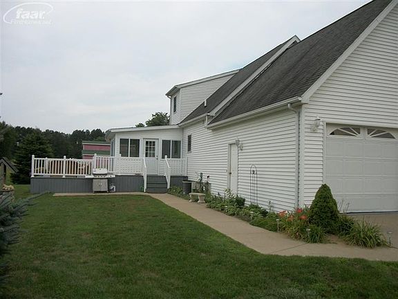 This fabulous homes has many features including 1st floor master suite with master bath, first floor laundry, all season room with heat, beautiful views off sunroom and deck, full length covered front porch, all appliances stay with sale, full finished basement with 2 sump pumps and firelit family room, bar and pool table, 32 x 48 pole barn with 10ft. ceilings all this on a sprawling tree lined 3.86 acres. Sellers are original owners and builders.