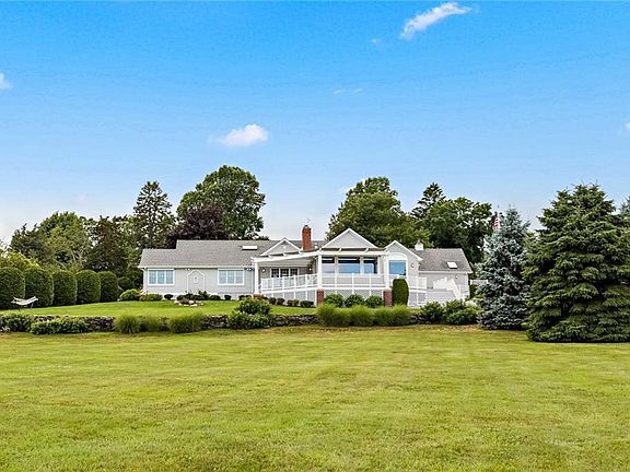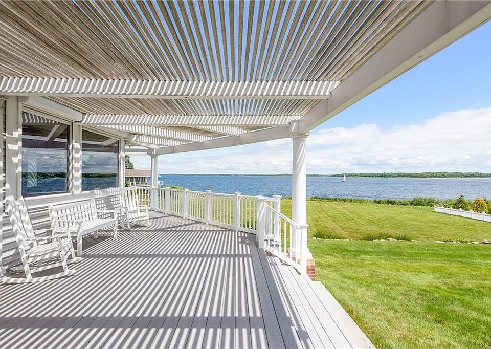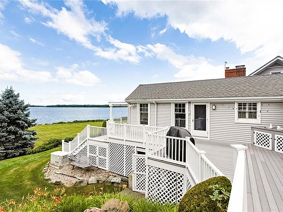 Start each day with a beautiful sunrise at this ideal coastal home retreat with stunning panoramic water views over Narragansett Bay! Sited on 1.7 Acres that include manicured perennial gardens and a sprawling lawn with easy and private access to the beach and coastline. This one level residence went through a complete Architect redesign and renovation in 1999 to create modern and spacious interiors highlighted with soaring roof lines, picture windows and many custom built in details throughout. The kitchen with a grand center island opens to the great room with gas fireplace and centers the home, with inviting/flexible living and dining rooms on either side. Well suited for entertaining - there's also a formal dining room, with wet bar and beverage stations to connect the spaces. Currently a two bedroom home - please note there is a den that could easily convert to an additional bedroom without compromising any living space. A remarkable wraparound porch facing the water extends from one side of the house to the other and beckons you to linger outside for hours! Oversized two car garage attached. Electronic hurricane shutters and whole house generator always a plus. The lower level is the entire footprint of the home w/steel beam construction and potential for additional living space, storage and/or workshop. 10 minutes to TF Green/Commuter train, Rte.95. Premier golf & tennis (Warwick Country Club, Harbour Lights), marinas, Rocky Point Park all within 5 minutes.