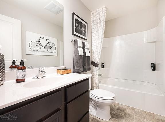 Captivating 1,565 sq ft townhome in the exciting new West Lake community in Cary! Impeccable Stirling townhome design boasts 3 bedrooms, 2.5 bathrooms, and 2-car garage! Mesmerizing kitchen features abundant counter space, designer cabinets with crown molding, expansive island, and new stainless steel appliances! Thoughtful open concept layout places the kitchen beside the breakfast and great room areas, providing an ideal space for entertaining! Impressive master suite includes oversized walk-in closet. Convenient second story laundry room! Master bathroom includes dual bowl vanity. New Stirling townhome for sale in Cary features a professionally landscaped yard with lawn care and snow removal! Model home pictured. ****dark cabinets featured in the actual unit***