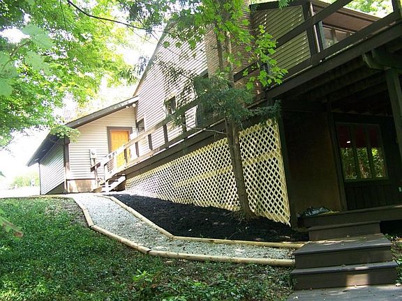 Dock your boat behind this Ranch home which offers 4 bedrooms, 3 bathrooms, 2 full kitchens, and 2 back decks for viewing the scenic woods and Knox Lake. The master suite has Maple hardwood flooring, a private bath, 2 nice sized closets and a sliding glass door that leads to the rear deck. Custom made Cherry cabinets with pull-outs, 2 lazy-Suzannes, and many drawers for storage fill this well-organized kitchen. Corion counter tops, new vinyl windows and a black Periclean sink accent the beautiful cabinets. Antiqued Cherry hardwood flooring in the living and dining room is a rare find. Absolutely beautiful!!! Large windows in the living and dining room allow for ample lighting and views of the woods and Knox Lake. Conveniently located on the first floor, the laundry/mud room