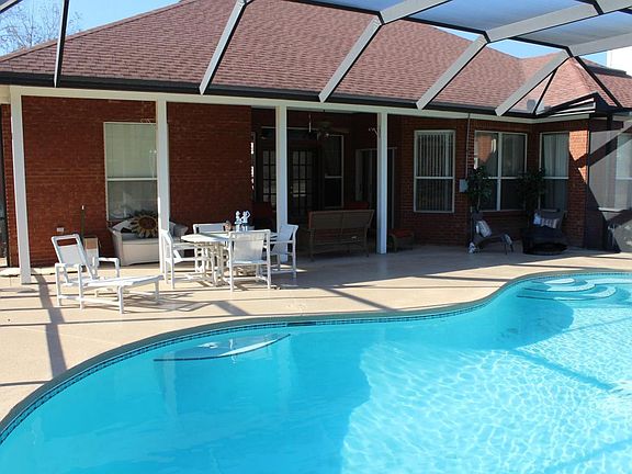 Beautiful all brick home 4 bedrooms 3 1/2 bathrooms set in a tranquil large acreage setting. Home offers spacious rooms with high ceilings. Formal dining room with large arched south facing window for plenty of light. Large family room has access to lania & pool area. Formal Living room opens through French doors to covered pool and patio. Plenty of room for the largest of family gatherings. Master bedroom and bedroom 2 have their own private bathrooms. Bedrooms 3 and 4 share a Jack and Jill bathroom. Master suite with two vanities, garden tub and separate shower. Walk in closets. All appliances in kitchen are staying with home. Attached 2 car garage with plenty of storage area. Spacious separate laundry room. Huge yard with basketball court. Property backs up to woods. This is a MUST SEE!