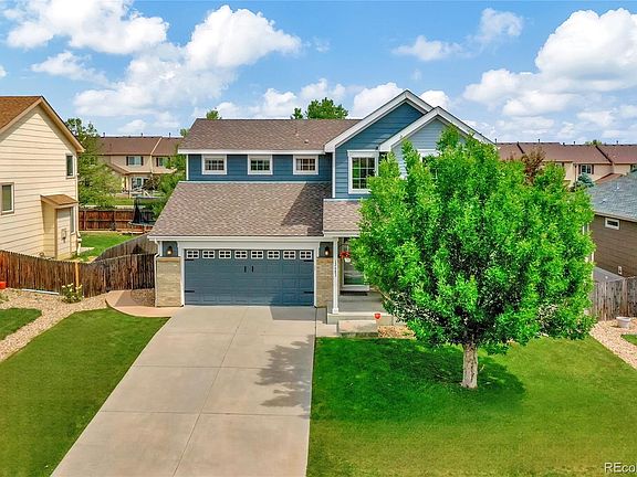 Welcome to your dream home! This stunning 3BR, 3BA property blends modern upgrades with custom features. The exterior, freshly painted <5 yrs ago, boasts upgraded fixtures and a welcoming facade. Step inside to discover beautifully upgraded interior fixtures and hardware, complemented by a custom stone fireplace overlooking the expansive living room. The kitchen features a custom backsplash, premium countertops, and newer appliances. The walk-in pantry allows for endless storage options. The master bedroom highlights a renovated master bathroom with a brand new vanity and a large walk-in closet. The home showcases many added/custom storage spaces allowing you to maximize space and stay organized! The laundry room is conveniently located on the second level for added ease and privacy. The garage underwent a complete makeover just over a year ago, now featuring a finished floor, enhanced lighting, fresh paint, and custom storage/workbench. Enjoy peace of mind with a brand new furnace and AC installed in Dec 2022, a newer water heater as of May 2019, and freshly cleaned air ducts from Mar 2024. Nestled in a quiet neighborhood with spacious lots and plenty of room between houses, this home offers a tranquil living experience with no direct neighbors behind and ample parking in front. The backyard is perfect for entertaining and fun, featuring concrete pads ideal for hosting or relaxing or a charming custom playhouse. You’ll love the location, with beautiful paths and trails weaving through the neighborhood, three parks within walking distance, a local coffee shop, new restaurant, and other businesses just a short stroll away. Proximity to Walmart and the new King Soopers offers convenience. The surrounding area is filled with up-and-coming developments that will lead to future value appreciation. Smart tech within the home adds a modern touch. The upgrades, alongside the charming character, will leave you ready to make your own mark on this home!