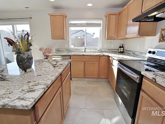 This neighborhood is a hidden gem in Nampa - 10 minutes from Lake Lowell, nearly 2 acre community park, 8 minutes to shopping and walking distance to the elementary school! This home welcomes you in with both living and family rooms on the main level, powder bathroom and an open floorplan with access to the 30x10 custom-paver patio. The kitchen boast stainless steel appliances, center island with exquisite granite countertops, and oversized pantry. Upstairs features the massive master bedroom with dual vanity/soaker tub/separate shower and 16' deep closet. All other bedrooms are generous sized with some having walk-in closets. Both side yards are great use of garden space, dog run or potential RV parking.