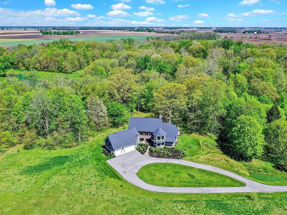 12.8 Scenic acres of private & wooded living is now available in Hamilton County. Imagine - a special CUSTOM HOME in a serene country setting with an abundance of wildlife viewing! This 4 Bed / 2.5 Bath home features floor to ceiling windows in both the 2-story Great Room & a dramatic "turret" Dining Room. The dining area is an easily adaptable flex-space for a unique Library/Den. Attractive designer finishes thru the home include special fixtures, 2-story beamed ceiling detail, high-end finishes, floating shelves, signature tile features, wide plank floors, and more. Well appointed Kitchen includes 6 burner chef-quality gas range w/ pot filler, chiller, entertainment bar, XL Center island with storage and generous work space. Be amazed by a GENUINE BUTLER'S PANTRY - a 10x14 work area which offers space for small and large appliances, food storage, and kitchen & entertaining essentials. Family-friendly mud room provides cubbies & opens to a convenience-designed laundry room. Main level Primary bedroom is a quiet retreat with oversized walk-in closet and spa bath with soaking tub, walk-in shower and dual vanities. Upper level has 3 GENEROUS bedrooms - all with extra-special details. Lower level is OH-SO-LARGE and ready for your special "wants". The full basement is not only enormous but (is currently) perfect for that extra activity area you always need! Outside is Nature's wonderland. Deck, patio, fire-pit area, play-ground, are all steps away. And for more aggressive play/exploring...there's ACRES of WOODS to explore in this VERY PRIVATE country setting. The shared private drive is used only by 2 nearby (but not too near) homes, and ensures that your ability to enjoy quiet-country living is REAL and POSSIBLE in this incredible setting. A truly RARE FIND.