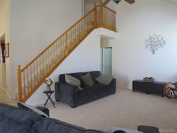 Wow! Best location in sought after Danbury Park: Tucked inside community and backing up to greenbelt! Open and airy layout that’s ideal for entertaining yet comfortable for everyday living! Breathtaking great room with soaring vaulted ceilings and an abundance of bright cheery windows! Spacious kitchen with loads of white cabinets, granite counter tops, handy breakfast bar/center island & separate dining area! Convenient main level laundry room with cabs and worktop! First floor guest bedroom and full bath! Luxurious primary suite takes up the entire second level: 5-piece bath, gigantic walk-in closet with built in organizers and a sitting room/office (could be converted into a bedroom)! 630 square foot basement with rough-in plumbing; ready to finish to suit your needs! Extensive updates, including 2023 Rheem furnace (with air scrubber) and roof shingles, newer appliances and more! Lots of subtle extras: neutral paint, plush carpet, attractive window coverings, tile floors, energy saving whole house fan, oversize 2 car garage+++ Easy and carefree living in this premium community! Close to shopping, hospitals, light rail, DIA and all metro Denver via I225! Hurry, won’t last long!!