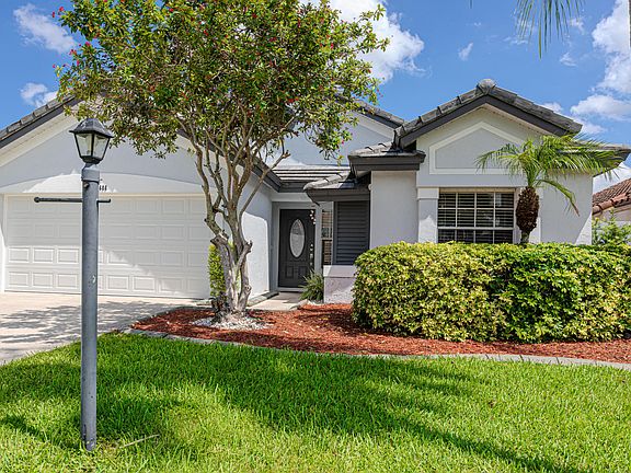 This ideal single-family home is perfect for families, featuring a split floor plan, gorgeous laminate flooring, and a bright, open layout. The spacious living room overlooks the patio and private pool--ideal for watching the kids play while you relax. The kitchen includes white cabinets, elegant countertops, a stylish mosaic back splash, and space to dine comfortably. The master suite offers a walk-in closet and private bathroom, while the other two bedrooms are great for children or a home office. The backyard features low-maintenance artificial grass, perfect for year-round outdoor fun. Located in family-friendly Wellington, known for its A-rated schools, parks, and safe neighborhoods. Plus, the home is in a community with a low HOA, adding even more value.