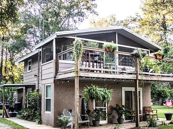 This two story home located across from the Santa Fe river is a hidden gem. This house has a modern boho style with a mix of rustic and farmhouse elements. This newly renovated home offers one bedroom, two bathrooms and a bonus room that is currently being used as a closet. Could be used as a second bedroom. The master bedroom is a loft style open floor plan and the second room can be used as the second bedroom or a walk in closet. Situated on .92 acres and features a large patio upstairs, half screened in to enjoy your morning coffee and watch the wildlife, and the other half open to lounge in the sun. This community is flourishing in wildlife. You can enjoy watching deer every morning and evening. This home is located in Ira Beas Oasis, a private river community, with access to a private boat ramp, community park, stage for a band, and lots of extras. You can enjoy fishing, boating, floating down the river, walking, golf cart rides, and so much more in this laidback, quiet community.