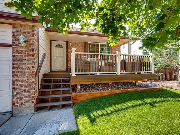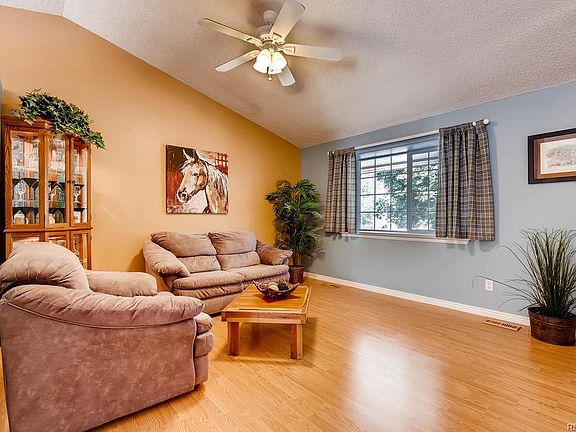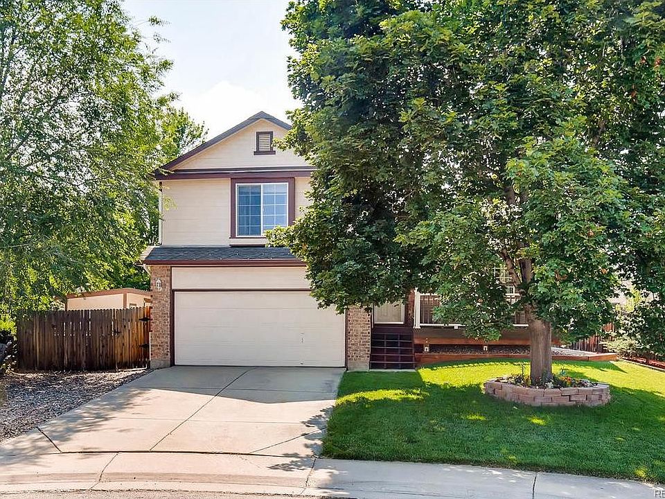 Welcome Home! This charming tri-level w/fin bsmt in desirable Westgold Meadows is built on one of the rare larger lots in the neighborhood. The moment you walk up the front porch steps you will notice the pride of ownership. Relax and Enjoy the beautiful front yard and Colorado weather from the large front porch. Walk inside and notice the great open floorplan, vaulted ceilings, and newer laminate wood flooring that extends into the kitchen. Enjoy cooking and not being far from the action as the kitchen flows into the living room. The newer back slider door opens up to the amazing backyard with new mulch, concrete patio, well kept grass, new concrete basketball pad & hoop, nice storage shed, room for boat/camper parking and the adjacent park. No peeling paint or issues with maintenance on this house! The upper level has 3 bedrooms, 2 Bathrooms, and the laundry all on the same level! It has a finished basement w/updated bathroom & bedroom. Don't wait long, this one won't last!