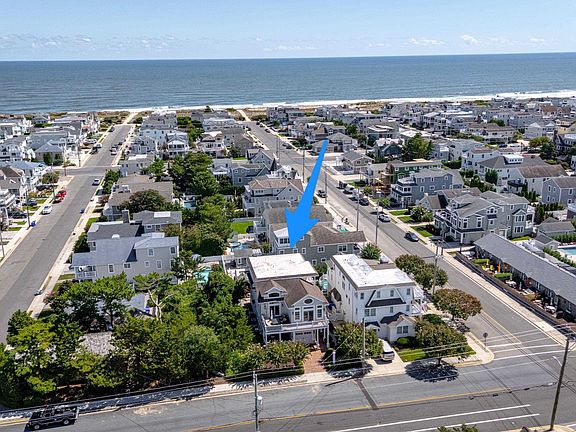 CLOSE TO THE BEACH WITH ONLY ONE STREET TO CROSS. Three stories of comfort with a cozy feeling and entertainment space galore.Highlights include a quiet location that’s not far from town, a sun-drenched pool & patio area w/ wonderful cabana, four stop elevator from grade, Great Room with soaring ceilings, private bedroom/bath suites, an exquisite interior trim package & more! The Floor Plan features 5 bedrooms, 4 Full Bathrooms and 2 Powder Rooms. This beautifully decorated home offers tremendous indoor & outdoor space for the entire family & friends! The first floor has a Family Room with built ins and a private deck, Powder Room and two large guest bedrooms, each with an ensuite bathroom. The second floor opens-up to a large Living and Dining Area, which connects the enormous cook's kitchen with center island. The large deck off the Great Room has plenty of space for the entire family to relax and enjoy the summer nights after dinner! Also located on this floor is a Powder Room and 2 more large bedrooms, with a Jack/Jill bathroom. The top floor is reserved for the spacious Master Suite with en-suite bath, walk in closet and private deck. There is plenty of space for workout equipment on the loft area with balcony overlooking the great room as well as a second laundry. The rear yard with in ground pool is an oasis with all new arborvitae just planted for privacy. The 12th Street beach is lifeguard protected and the surfing beaches are between 13th and 14th Streets. The home is easy to show and ready for immediate occupancy.