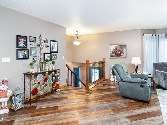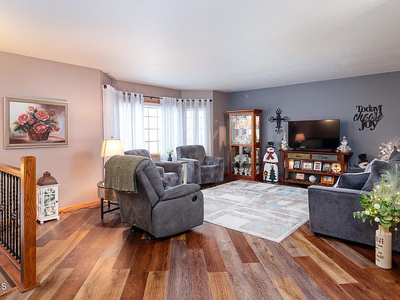 Welcome to this turn key 4 bedroom 2 bathroom home in a great NW neighborhood! This home features updated bathrooms, loads of natural light, metal siding, and solid surface floors throughout the main level. The spacious primary bedroom has a walk-in closet. The kitchen has plenty of cabinet and counter space. It opens to the dining area and the living room. The large maintenance-free deck is perfect for entertaining or relaxing, and overlooks the spacious backyard. The lower level has a family room w/ fireplace, two bedrooms, a bathroom, and a laundry room. The attached garage has extra storage space. This home is conveniently located close to the walking path, Jefferson Elementary School, Charlie Brown Field, hockey arena, and the track. Don't miss this opportunity to own this move-in ready home!