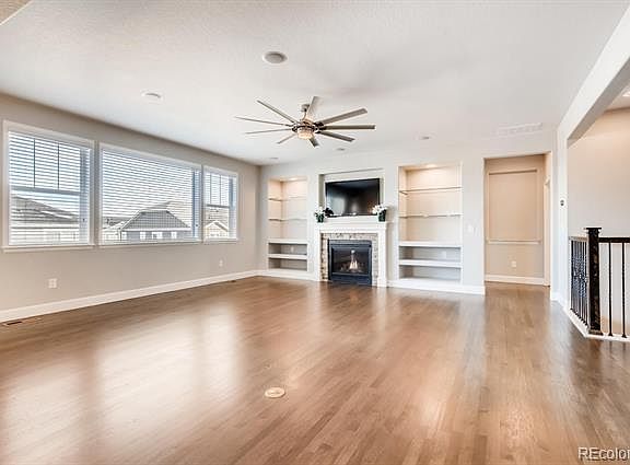 BEAUTIFUL 2 YR OLD RANCH HOME WITH MOUNTAIN AND HILLSIDE VIEWS IS LOCATED IN THE DESIRABLE NEIGHBORHOOD OF DIAMOND HEAD AT PLUM CREEK. THE HOME HAS EXTENDED HICKORY HARDWOOD FLOORS. THE GOURMET KITCHEN OPENS TO THE LIVING AREA WITH WHITE SHAKER CABINETS, DBL OVENS, GAS COOKTOP, GLASS TILE BACKSPLASH, GRANITE COUNTERS, SLIDE OUTS, AND A HUGE ISLAND. THE LIVING ROOM HAS A FIREPLACE WITH A TV MOUNTED ABOVE. TWO LARGE LIGHTED NICHES CONTAIN CUSTOM GLASS SHELVING FOR DISPLAY ITEMS, THE DECK LEADS DOWN TO A MAINTENANCE FREE BACKYARD WITH ARTIFICIAL TURF, PINE TREES AND BUSHES. THE FINISHED BASEMENT IS GORGEOUS AND HAS PLENTY OF EXTRA STORAGE SPACE. THIS HOME IS CLOSE TO DOWNTOWN CASTLE ROCK, DOUGLAS COUNTY FAIR GROUNDS, SPORTS FIELDS, DOG PARK AND EASY ACCESS TO I-25