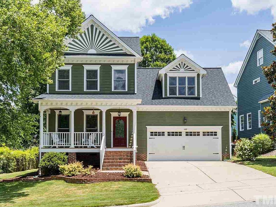 Sit on your front porch and enjoy living in one of the most popular neighborhoods in Apex! Gleaming hardwoods welcome you into this custom home with chef's kitchen- granite, tiled backsplash,breakfast bar, 2021 dishwasher; Open floor plan; Large FINISHED THIRD FLOOR with custom built-ins, wet bar! 4 bedrooms on second level; master suite with spa-like bathroom, custom closet! Tankless water htr; Lg deck overlooks private, fenced, flat backyard! Community has pool, tennis, pickleball, basketball court!