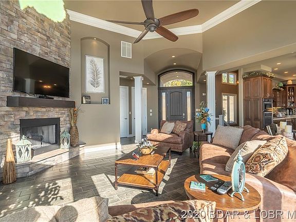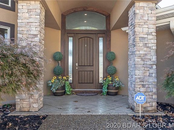Gorgeous South Facing Thomas Construction home w/gentle driveway oversized 2 car garage, extra parking, gentle lakefront w/no steps to cruiser dock. Great Room soaring ceilings, Architectural detailing, stacked stone gas fireplaces, wood plank tile floors. Beautiful case & base, trayed ceilings, crown molding & wood pillars. New Kitchen, baths, floor & paint in 2018/19 plus guest suite addition on upper level. Large lakeside master suite w/i closet has w/d. Kitchen features granite, high end S/S appliances,Formal dining & lakeside concrete deck views the irrigated landscaping, water feature, concrete path front to dock. LL has family room adjacent to wet bar & refrigerated wine room, guest en suite w/beverage center, 2 guest BR & full bath.One of a kind top of the line enclosed kitchen w/outdoor access windows & bar counter, commercial fridge, standalone ice maker, adjacent to the outdoor "smoker room" with grill, smoker, fish fryer, half bath & overhead pull down glass fronted door.