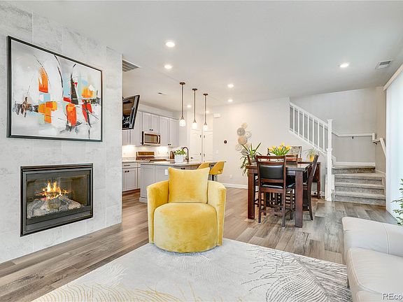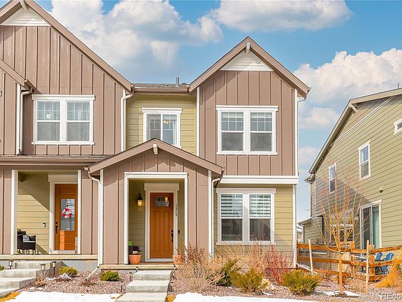 Exceptional paired home in Flatiron Meadows! Nestled in a serene neighborhood boasting breathtaking mountain views, this property offers an unparalleled blend of comfort & elegance. Discover an abundance of natural light flooding through the large windows adorned with new Hunter Douglas window treatments, casting a warm glow on the waterproof laminate flooring. The recessed lighting highlights the meticulously designed open-concept main level, perfect for enjoying quiet evenings by the fireplace, which features an eye-catching floor-to-ceiling accent wall. The kitchen beckons with desirable features including soft-closing cabinets, granite countertops, and stainless steel appliances. Prepare culinary delights effortlessly with the gas stove equipped with an additional electric hookup and enjoy the convenience of a hands-free faucet and a three-rack dishwasher. Upstairs, plush extra-cushioning carpet leads you to a spacious loft, ideal for a home office or relaxation space. The expansive primary suite is complete with a ceiling fan hookup, a luxurious ensuite bathroom with dual sinks, and a generous walk-in closet. Two additional bedrooms and another bathroom provide privacy and comfort for family members or guests. The attached two-car garage is equipped with hanging racks and an additional electrical outlet, perfect for extra storage and potential electric car charging. Step outside to discover the newly tiled patio, fenced for privacy, along with a fresh concrete area and new sod, offering a serene outdoor retreat for al fresco dining. Conveniently located in Erie, you'll relish easy access to Prince Lake and Erie Lake, as well as nearby shopping centers and major highways!