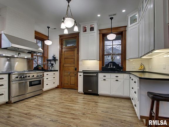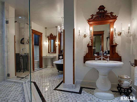 Renovated Queen Anne home with the best kitchen in historic Quincy. Massive 235 sq. ft. kitchen with double sinks, 48" professional double oven, gas convection range, pull out pantry spaces, exposed brick, & heated floor. Enormous master bedroom with seating area leads into a stunning bath with marble double walk-in shower and claw foot soaking tub. Both upstairs baths have programmable heated floors. Washer and dryer in 2nd floor laundry convey. Custom closets in master, new hardwood floors, and complete porch renovation. Dream workshop in a 2 story carriage house with 3phase power. Backyard (includes lot # 23-1-1645-00-00)with privacy fence, large brick patio, pond, fountains, plus a full extra lot for privacy.