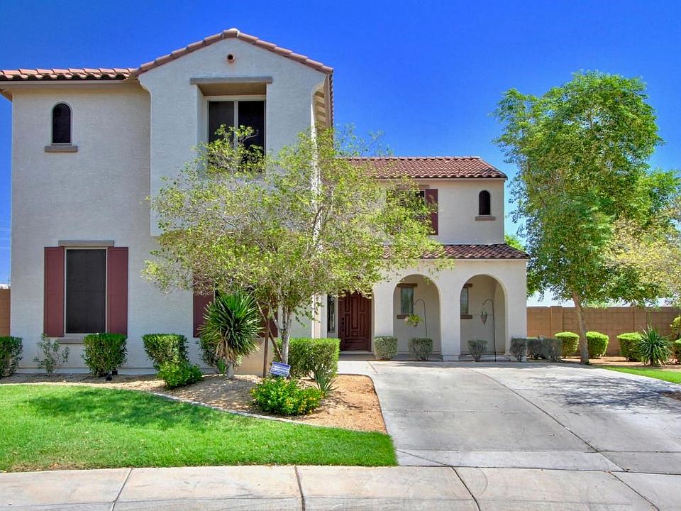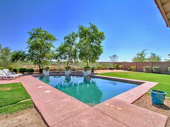 The best opportunity in Buckeye just arrived. Massive and private lot in a culdesac with a former model home. The pool is one worth swimming in and you have plenty of yard left for fun and entertaining. This home has four bedrooms with one downstairs. There are many upgrades such as upgraded cabinets, granite counters and iron stair railing. There are two separate and large living areas with a great room downstairs and a huge loft upstairs with views of the White Tank Mountains. The split Master has two walk in closets, dual sinks and a separate garden tub and walk in shower. The laundry has abundant cabinets and a sink. It's clear this is a former model home with all the upgraded and custom features beyond having one of the largest and most serene lots in the community. This is it!