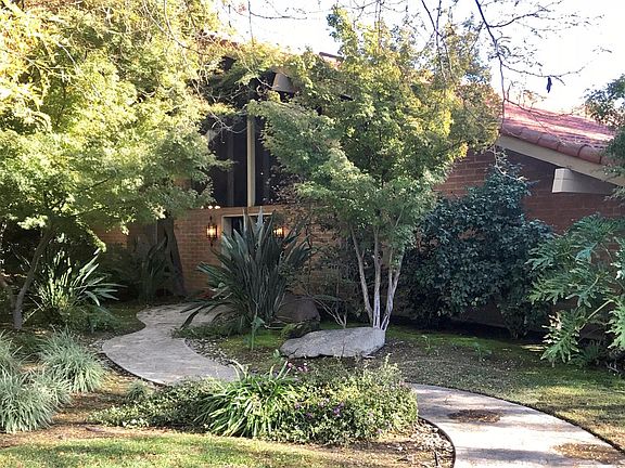 Unique architecture, striking design, open expanses, describe this Leo Wilson gem. This property is nestled in one of Fresno's most desirable locations park side of the original Bluffs. Step through ornate wrought iron gates to private courtyard. Soaring glass walls open to 3278 sq ft of understated elegance. Adobe walls, dramatic vaulted beam ceilings, bamboo & distressed concrete floors set the tone for this home. Open living areas allow views of the oversized fireplace, frml dining, Chef's kitchen w/6 burner gas range, double ovens, quartz counter tops, eat-in kitchen & an entire wall of storage space. Upstairs master loft, designer bathrms, and a sp family/4th bedrm w/ surround sound. Backyard: beach entry pool w/waterfall, spa, & gas fire pit. This entertainers dream rests on nearly .75 ac w/ lush grounds, raised garden beds, citrus trees, grape vines, rose garden all beautifully landscaped for privacy. Bed count differs from tax records, if important buyer to verify.