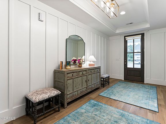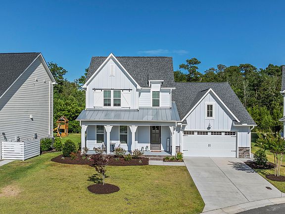 This stunning home located in one of Wilmington's most desirable neighborhoods offering a picturesque retreat that blends modern comfort with coastal charm. This meticulously maintained home features four bedrooms and four full bathrooms. The home is located on a cul-de-sac and backs up to a beautiful nature scene out of National Geographic. Upon entering the home, you are greeted by an inviting foyer filled with custom trim and board & batten. Which leads into a bright and airy living room with full sliding doors showcasing the backyards natural beauty and colorful wildlife. Perfect for relaxing or entertaining guests. The gourmet kitchen is a chef's delight with its gas stove and stainless steel appliances. Complemented by stylish quartz countertops, large pantry and ample cabinet space.