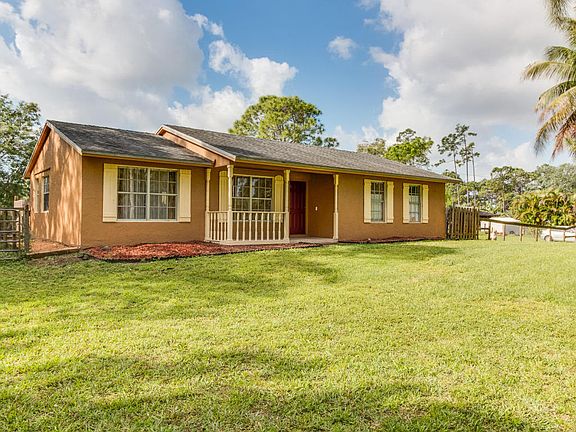Quaint 3 bedroom 2 bathroom home in the Royal Palm Beach section of the Acreage. This home is in a convenient location, close to town and with easy access to Royal Palm Beach Blvd. The property also has a small one stall lean-to shed that is currently being used for storage, but could be converted back to a stall. The backyard is fully fenced and the entire property is cleared. The interior of the home features an open floor plan, updated bathrooms, porcelain tile in the living areas, and granite counter-tops in the kitchen.