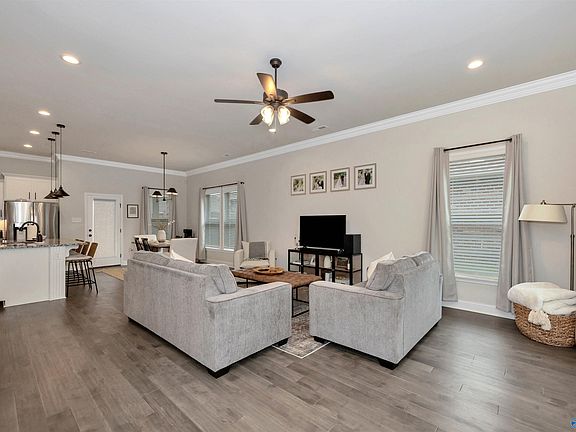 - Features: 10’ + Ceiling, Ceiling Fan(s), Crown Molding, Recessed Lighting, Sitting Area, Smooth Ceiling, LVP