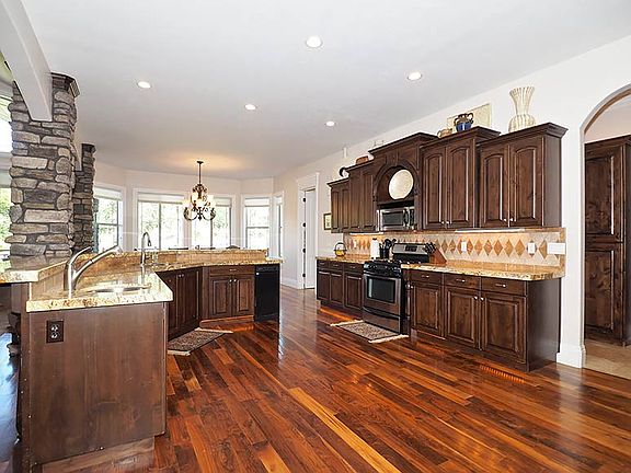 This stunning home is located at the top of the prestigious Beacon Hills community. The quiet street has no through traffic. The privacy of the backyard adds to the beauty of the landscape, blending into the unobstructed wooded views of nature. The layout of the home is bright and open and well-designed for large gatherings. 6 over-sized bedrooms plus 5 baths, 2 kitchens, formal living, formal dining. The main floor master bedroom includes a warm and cozy fireplace and lots of windows. A large private bedroom and bath works well as a 2nd master suite upstairs. 2nd laundry room up as well. Basement is open and bright with 9 ft ceilings and lots of natural light. Beautiful built-ins in the offices. Lots of storage. Custom woodwork and high-end finishes throughout. This lovely home has so much to offer. A must see. Shown by appointment. Square footage figures are provided as a courtesy estimate only and were obtained from appraisal dated 1/17/2012. Buyer is advised to obtain an independent measurement. All info deemed reliable but not warranted.