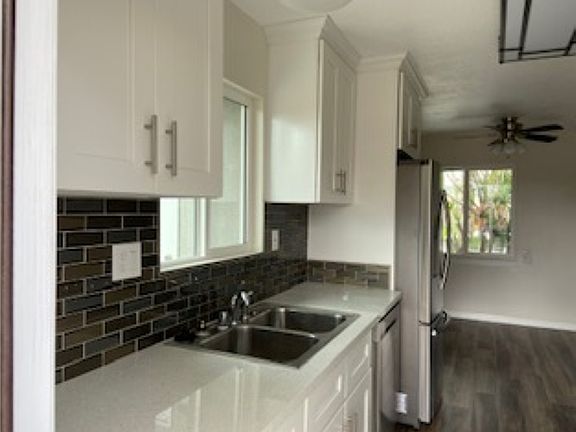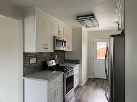 This Perfectly Turnkey/Impeccable remodeled Home is right in the middle of Garden Grove. Once you enter, you'll find laminate wood flooring throughout the living room and kitchen areas, including the bathrooms. A brand new kitchen with custom cabinets, quartz counters, custom tile work, brand new stainless-steel appliances including the sink! The carpeted/remodeled bedrooms with upgraded doors in all bedrooms and closets. Forced air heating/central air are added for your comfort. The extra large backyard (ready to be made your own), has new fencing, perfect for expanding, future entertainment and summer gatherings. There is also a finished attached garage with laundry area. Located close to shopping, restaurants, and freeway access. You must see this beautiful home, it won't last!