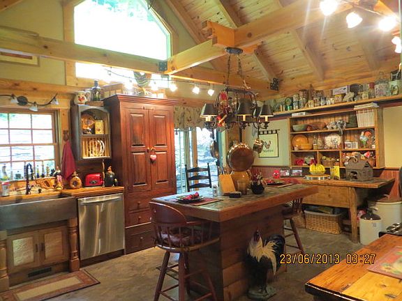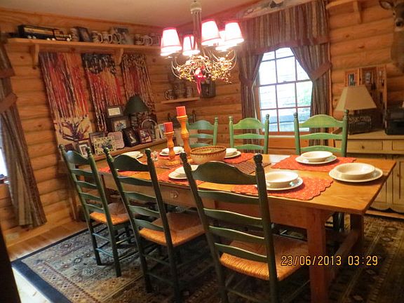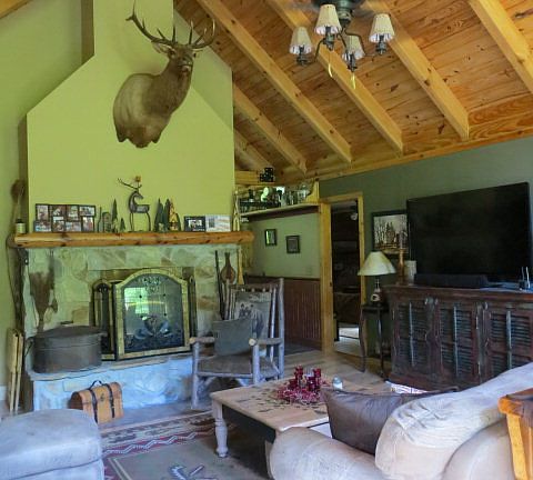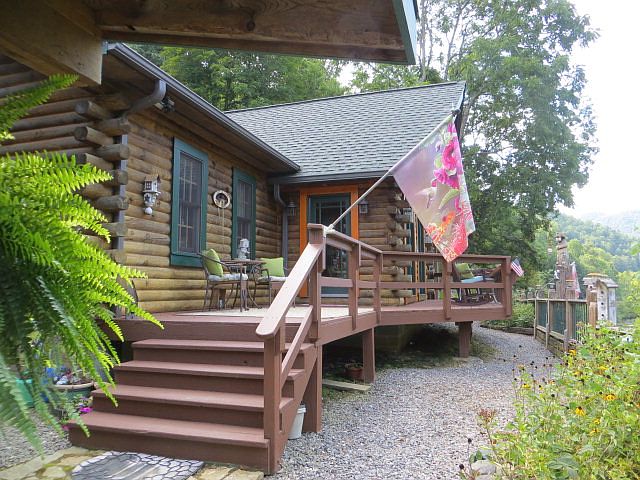 Beautiful Southland log home on 18.94 acres overlooking Cane River. Main home w/wrap around deck has stunning river/mtn views, great for entertaining. 3BR/2BA. Great room w/full wall of windows, hw floor, t&g cath ceiling, floor to ceiling stone FP, w/wood burning insert. Newly remodeled kit. w/heated tile floor, copper farm sink, handmade cabinetry and ss appliances. Lg MBR,newly remodeled BA w/heated tile fl lg tiled shower, handmade vanity, marble bowl sinks, spa tub and laundry area. Central air & new on-demand hot water. Complete apt w.pvt entrance above garage. More land available.