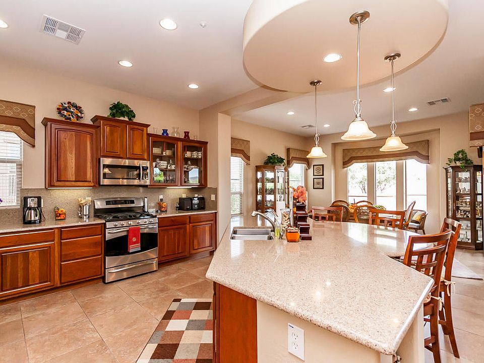 Must See Libertas Model w/ SWEEPING MOUNTAIN AND PEAK VIEWS + PRIVACY. Upon Entry Be W0Wed w/ Spectacular Views From Great Room, Kitchen, + Master Retreat..( Viewing in Person So Much Better Than Photos ). SOLAR Power, Upgrades & Amenities T/out, Paver Galore Patios & Walkways, Front Gated Courtyard, + Ext. Covered Patio w/ Built In Gas Fireplace. One of The Most Desirable Floor Plans Offers Great Room Living + GAS FIREPLACE + Separate Den. TWO BAY WINDOWS( Master Retreat & Breakfast Room ). Kitchen Offers Staggered Cherrywood Cabinets Including Glass Panels, Engineered Granite Counter Tops + High Back Splash, Stainless Steel Appliance, Roll Out Shelves, + Lazy Susan & Spice Rack. 4 ft Garage Extension, Built In Storage Cabinets, Workbench, Epoxy In Garage. So Much More Including Mature Landscaping, Entertainment Center In Family Room, Upgraded Vanities In Bathrooms, Diagonally Laid Tile, and More. Trilogy at Vistancia is a Gated Adult Community with The Amenities Of A Five Star Resort.