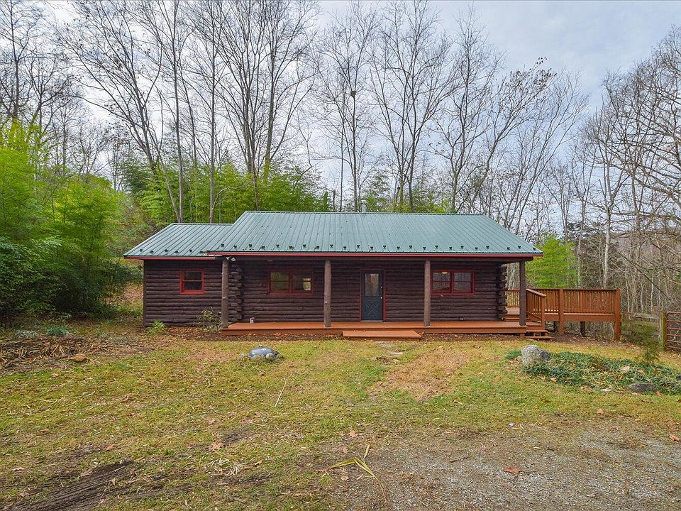Nestled on 15.86 acres, this 3 Bedroom, 1 Bath log cabin offers a charming and peaceful retreat with the bonus of one level living! This home has been lovingly updated with a brand new kitchen, updated bathroom, new floors, new light fixtures and fresh paint on the interior and exterior! Roof replaced in 2023. Cozy great room with fireplace open to an eat in kitchen with quartz countertops and brand new maytag appliances, plus three entry level bedrooms, laundry room, and bonus room/study. Relax on the covered front porch or indoor your spacious fenced yard from the large deck. The abundant acreage offers creek frontage, wildlife, and forestry. Easy proximity to great local landmarks like McAfee's Knob and the Appalachian Trail!