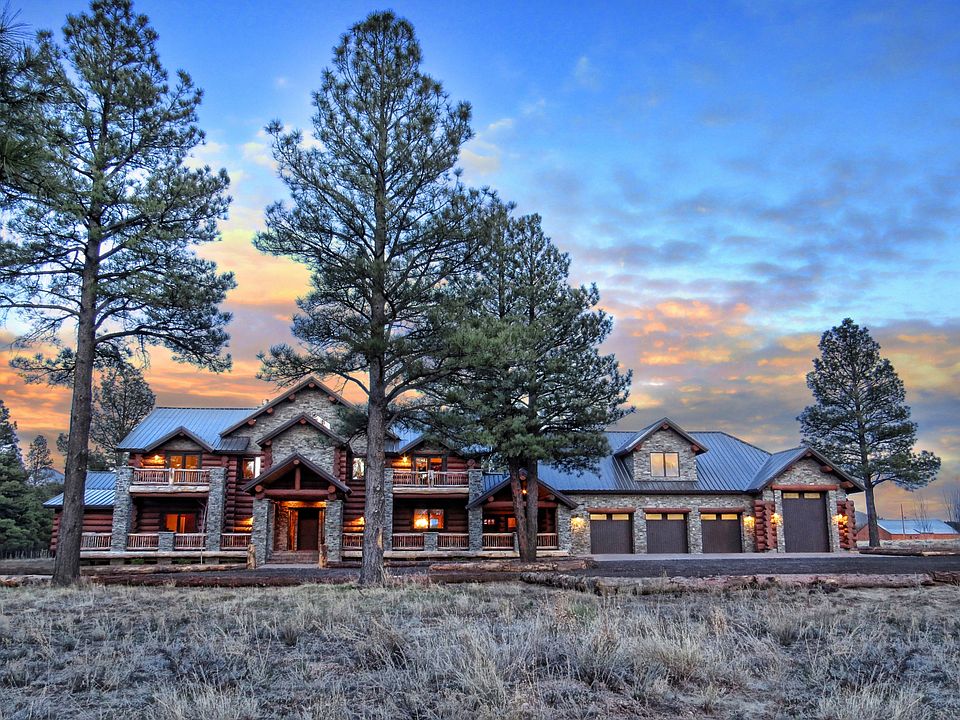 SOLD IN 60 DAYS! ELEGANTLY DESIGNED AND BEAUTIFULLY CRAFTED; Set like a jewel, yet nestled in a beautiful rustic mountain setting on over 30 wooded acres, this custom Montana Log home features excellent craftsmanship and an exceptional design. Planned and built just for you; four bedrooms, five bathrooms, 6,738 square feet of living space, four car garage and RV garage. Combination of soft living and classic elegance, entertaining in this home will be a joy! If only the best is good enough for you then this is it! Atmosphere of graceful elegance, yet a comfortable home for a large family. Striking entry foyer which opens to an enormous great room and San Francisco Peaks View, two Master Suites, large bedrooms with custom walk-in closets, three fireplaces, huge open Chefs Kitchen with Wolf Appliances high end fixtures and finishes with attention to detail throughout. Enjoy central air conditioning, central vacuum system, security system and hidden panic room. No expense was spared in making this a stunning yet exciting interior. Large back deck with paver patio which leads to a fire ring. Carefully designed for all areas both inside and out to capture the amazing Peaks views. Additionally, this spectacular home borders forest service land, is served by a private well, offers a spring fed pond which wildlife enjoy and a 3000 square foot Historic Beale Wagon Trail Barn making all your dreams come true. Also available is an adjacent 10 acre parcel should you desire even more room to roam....This property is a MUST SEE! There are far too many features to list here.