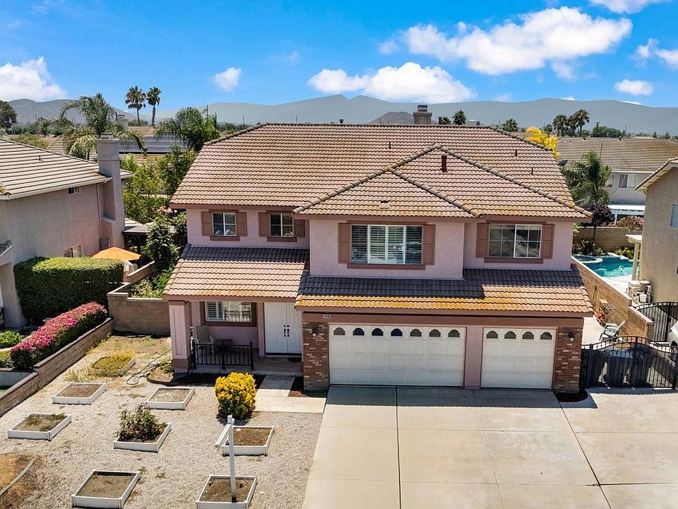 Beautiful 5 bedroom, 3 bath upgraded home – located in sought after Cloverdale Farms in central Eastvale. Walking up to the home you are greeted with garden boxes in the front. As the front door opens, the home welcomes you with its living and dining room. The kitchen, family room, fireplace and downstairs office flow into a 400 sq ft closed in entertainment patio taking you to the back yard. The kitchen includes stainless appliances, granite countertops, a kitchen island, and beautiful cabinetry. The downstairs also includes a bedroom, bathroom and laundry room. Follow the staircase up to an additional family/game room, with aquarium wall separating a second office/bonus room. The impressive master bedroom includes a private sitting area with fireplace, expansive space and a walk-in closet. The second story has 3 more generously sized bedrooms and a shared bathroom. Walking through the home reveals elegant tile flooring, plantation shutters, crown molding throughout, intercom system and ceiling speakers. The backyard is an entertainer's dream complete with a rock waterfall pool, BBQ island, fire pit and garden boxes! RV parking, three-car garage and ample storage complete this home. See Supplemental.