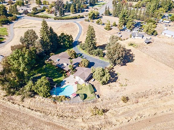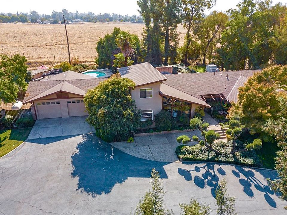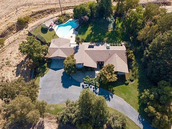Welcome to your next home in the country! This stunning 2.8 acre property with views of the Sierras is sure to please! This classic 4 bed 2 bath home features a formal living room and family room with sunken fireplace, large picture window and access to the yard and deck. The beautiful kitchen features white cabinets with slide-out drawers, Corian countertops, and breakfast bar with overhead lighted showcase cabinets. The master suite features 2 closets, slider to backyard, an en-suite bathroom with sunken tub, large mirrors, and slider to private garden. The 2nd story 4th bedroom has a private entrance, 2 closets, numerous windows and would be perfect for an office, homeschool, and/or guests. The backyard is an entertainer's delight with a sparkling pool, large patio area, wooden deck with built-in benches, gorgeous mature landscaping and 2 large storage rooms. New paint and carpets throughout and a finished 2 car garage with built-in cabinets! This gorgeous property is a must see!