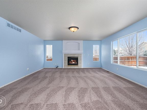 This Thornton two-story home offers a gas fireplace, a walk-in kitchen pantry, a loft, a deck, and a two-car garage.