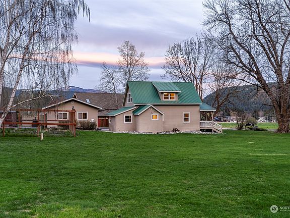 Nestled on a vast 1.3-acre lot in the coveted Ski Hill area, this exquisitely renovated 3-bed 2-bath gem is mere minutes from Leavenworth's vibrant hub yet offers tranquil seclusion rarely found so near to town. Step inside to discover real hardwood floors, a cozy propane fireplace and a modern kitchen featuring a Wolf range, quartz countertops & stainless appliances. Outside, a sprawling lawn and covered front porch invite you to relax and take in the mountain views, and a large, fenced garden awaits spring planting. Storing all the toys is a breeze with 2 garden sheds and a 2-car detached garage with heated workshop space. Skiing, golfing, hiking, biking and the river are all just moments away. Call to schedule your private tour today!