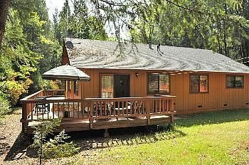 TUCKED AWAY among the PINES sits this CEDAR SIDED residence that defines warmth & hominess. 3 PLUS PRIVATE ACRES on this little known road just a few minutes from town. Featuring the PERFECT SINGLE STORY floor plan. The living room & dining room include bay window and woodstove. Generous kitchen is adjacent to the breakfast nook and FAMILY ROOM (currently used for dining). Bedrooms are all spacious and welcoming. Large WRAP-AROUD DECK & Private back PATIO. This home has been perfectly maintained and shows like new. Surrounded by Forest for low maintenance.