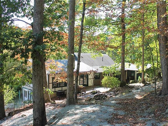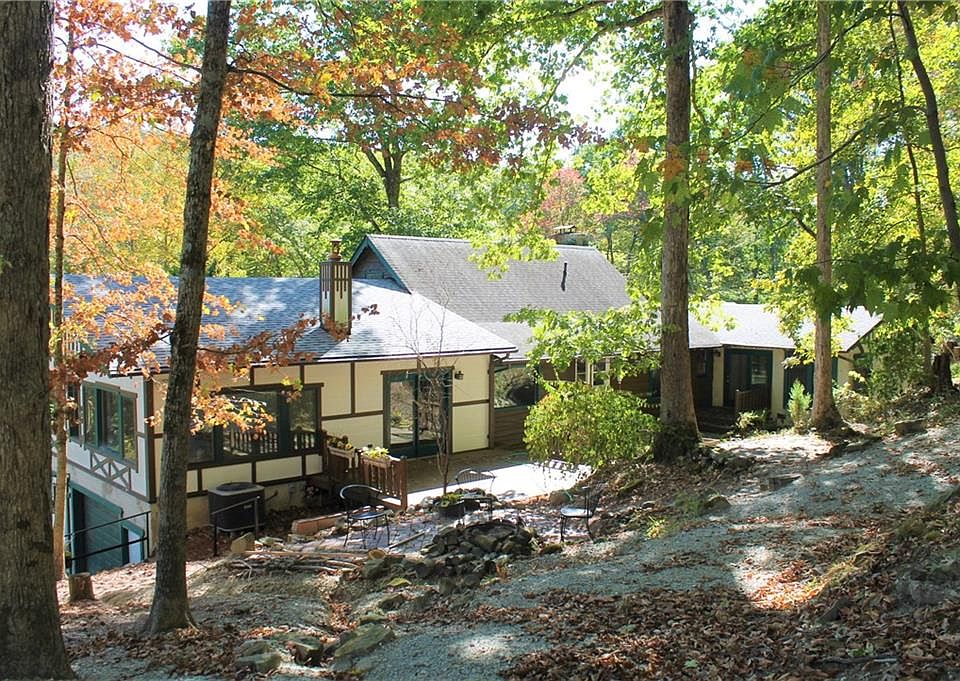 Imagine a "Faerie Cottage and Garden" but on a much larger scale. Whimsical touches at every turn from the outside through the inside & soooo much living area. Everyone will have a spot to call their own. Added to the original home is a huge great room with 3 walls of windows. Office/studio room is part of this space with octagonal windows & stained glass piece. Pass through combined kitchen/dining area into a space where imagination runs wild--corners filled with cascading rock waterfall into gathering pool with arched walkway across, fireplace. Waterfall shower/bath part of master suite, 3-D butterfly stained glass window. Upper BR w/half bath. Big FR, stone hearth, laundry, storage. Built-in 1 C Gar. 4 sheds, deck, patios, firepit.