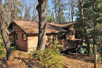 Sequestered Mountain Residence. Enjoy the privacy in the beautiful home located only 5 minutes to Historic Grass Valley. Pines and deciduous Oaks set the scene for winter sun & shaded summer days. Move in ready featuring Glowing Hardwood sand Wood Paneled ceiling in the GREAT ROOM with many windows to take in the scenery. Modern, open and inviting Kitchen with oversized informal dining and separate deck. Expansive deck can accommodate many guests. Very Generous Bedrooms including the Master Suite with bay window and window seat & large master bath. Extra deep garage allows for workshop area. Lots of storage throughout. Rooms for gardens, RV parking and more. The Beauty of this Home and Land will capture your heart