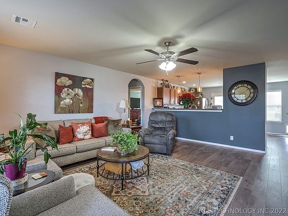 Immaculately Cared for Home in highly sought after Bixby school dist. Large open Living & Kitchen with New Stainless Appliances, Including 5 burner gas stove , New lighting, and New Laminate Wood flooring in Kitchen , Living & both Halls. Nice sized bedrooms with new carpet, Indoor Safe Room, New Hot Water Tank 12/21, Extra deep garage , Expanded Patio 12X26 with 10X12 Gazebo at one end. Large Lot Backs to Greenbelt for extra privacy.10X12 Shed in Backyard. Seller Prefers 60 Day Close.