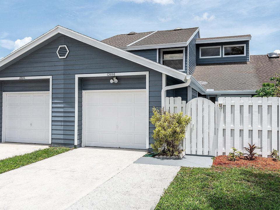 Welcome to this charming lakefront home featuring 3 bedrooms and 2.5 bathrooms. Enjoy the bright and airy living space with vaulted ceilings that flood the area with natural light. The split floor plan offers a ground-level master suite for added privacy. The updated kitchen boasts granite countertops and stainless steel appliances, while the two updated bathrooms provide modern comfort. Fresh paint and new flooring throughout add to the home's appeal. Relax on the fenced front and back patios. Additional features include a one-car garage, a driveway with space for two cars, and a new roof coming soon. No HOA!