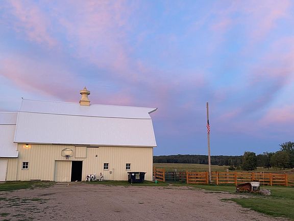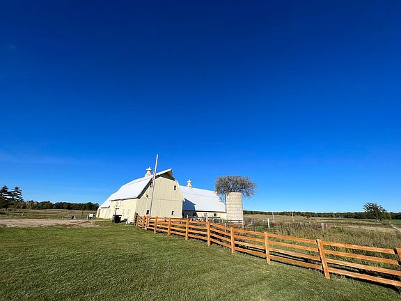 COUNTRY CHARMER. Updated 3-bed, 3-bath farmhouse with a convenient 3-stall attached garage. In the basement there is a 3/4 bathroom and potential for an additional bedroom needing an egress window. Situated on 10 beautiful, level acres, the property features a spacious 7-stall 4,000+ sq. ft. barn. Approximately 4 pasture acres, and an extra building for your home-based business, storage, or endless possibilities. Embrace the rural lifestyle you've been dreaming of!