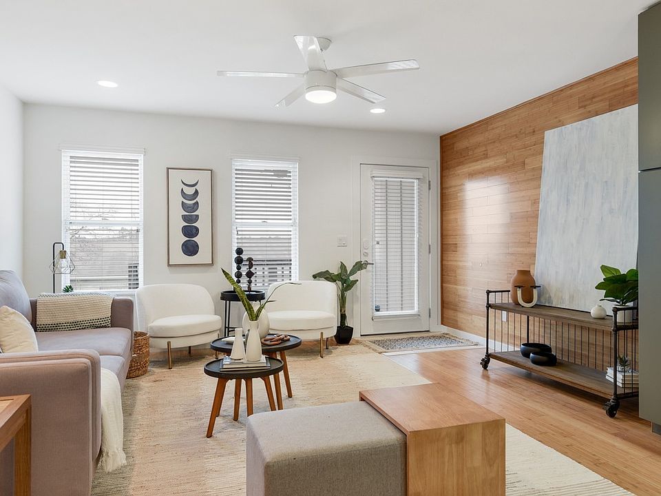 Panoramic view of downtown Nashville surrounded by Million Dollar homes. Less than 1 mile from River North development and Top Golf - PRICE IS $100K BELOW RECENT APPRAISAL- BRING OFFER! Nearly new light-filled soft contemporary. Enjoy updated chic finishes with clean lines & functional spaces. The top floor primary suite will make you fall in love! Zero lot line with no HOA allows each owner to have control over their own side. Spacious front yard, paved alley w/ extra driveway rear parking, 2 covered rear porches, today's expected decor in an ultra-convenient location! owner/agent