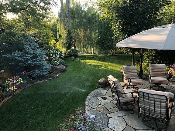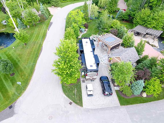 Lot 127 is a considered one of the most sought after "Premium" lots, east-facing pull-in, with water views, in Phase IV of Hearthside Grove. This 7,210 square foot corner lot features a sparkling stream that meanders along the southern property line and flows into the pond highlighted with a fountain. Beautifully designed and extensive landscaping with native evergreens and vibrant perennials grace the gardens. As you walk across the sumptuous lawn, you immediately feel a sense of calm and peace. The owner has added special touches including custom New Orleans French Quarter natural gas lanterns, boy and girl bronze statuary, and a copper topped bird house. The outdoor stainless kitchen provides plenty of room for preparing gourmet meals and entertaining with granite countertop, natural stone base, comfy bar stools, stainless BBQ grill, stainless drawers, refrigerator, and sink, water softener, High-Definition TV, in-ceiling heaters for cool evenings and retractable shade. Invite friends over for a glass of wine to relax on comfortable seating around the natural gas fire pit while soaking in the evening sunsets. Step up into your gable style guest house - bungalow to appreciate the additional space for guests, complete with a comfortable sleeper sofa, fan and A/C, TV, kitchenette with refrigerator and microwave, and stainless sink. The bathroom includes a vanity and large shower. The guest house also includes a generous loft area for guests and storage. If you are desiring the feeling of luxury and tranquility, you will find it here. Ownership includes North Clubhouse amenities, outdoor pool, hot tub, and fitness center. Personal property exclusions: Two handcrafted pine coffee tables, two oil paintings and two bicycles.