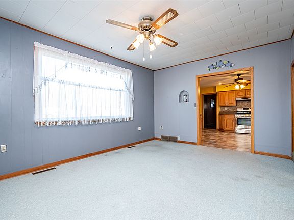 Extremely affordable housing just 20 min from Iowa City & Muscatine. Vinyl siding, metal roof, bathroom w/ heated ceramic tile floor, jetted tub & appliances all new within last 10 years, w/ the exception of W/D. Heater in shed not warranted and sold as is. S.S. gas stove & refrigerator, Oak cabinets in kitchen w/ lots of storage/ counter top space & tile back splash. Furnace, H2O heater & huge laundry room all on main floor. 2 storage sheds & 26 x 20 detached garage, (East Garage is neighbors.)