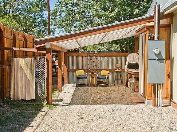 This 2 bedroom, 1.5 bath stawbale, post and beam was built with very high insulation levels, keeping you cozy in winter and cool in the summer, with polished cement floors with radiant heat and a Vermont Enamel cast iron wood stove for crackling winter night fires. The main floor has a light and airy feel, with bright aspen wood lining the living space and skylights that connect you to the blue skies above. The Rinni and Bosch on demand hot water heaters allow for bubble baths at your whim before nestling into bed under the pretty Beetle pine tongue & groove ceiling. Lounge on the sweet Juliette balcony and sip your coffee as you look over your blooming garden inhabited with birds of all kinds, including friendly humming birds. With R.V. hook ups, 5 water hydrants, car port and Rhino shelter, this home is ideal for storing your tools & toys, along with accommodating your large R.V. (Plenty of room for a 36 foot class A R.V.) The outdoor studio building is currently being used as an art studio, with fantastic insulation and aspen lining. Fiber optic available for convenience and ease for a home office and the shops, restaurants and theatres of downtown Saguache are a short stroll from home.