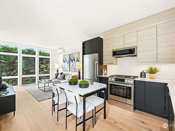 Introducing Roland Development LLC's latest masterpiece. This haven features wide plank hardwood floors, artisan custom cabinets, & a pro kitchen with upgraded appliances & slab quartz counters. Enjoy the ambiance created by Hi-Eff AC/Heat, smart-wired technology, LED & stair lighting, & custom closets. The primary suite is a luxurious retreat with a frame-less shower, heated tile floors, & meticulous details including built-in safe. All bathrooms boast heated tile floors for added comfort. Step outside to the view deck and take in the breathtaking vistas. Convenient off-street parking with a car charger enhances the experience. Within walking distance to area attractions, this Madrona stunner seamlessly blends elegance with accessibility.