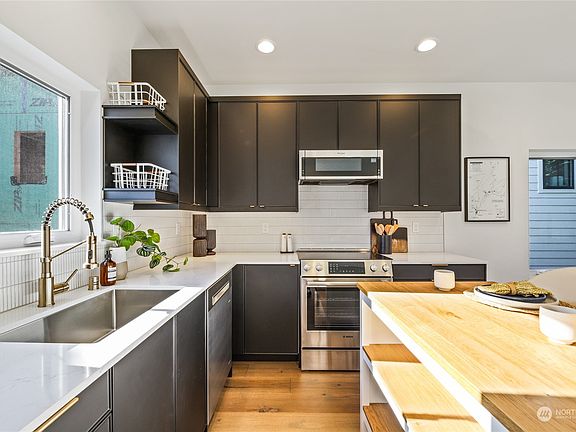 Introducing a captivating New Madrona cottage by premier builder Roland Development LLC. This detached gem features wide plank hardwood floors, custom cabinets, and artisan metalwork. The upgraded kitchen boasts slab quartz counters and under-cabinet lighting. Enjoy optimal comfort & efficiency with mini-split AC/Heat, Hybrid H2O heater, and watersense toilets. Smart-wired with LED and stair lighting, the cottage offers custom closets and a primary suite with a luxurious bath, frameless shower, and heated tile floors. Luxurious details include heated tile floors in all bathrooms, a rooftop deck, & built-in safe. Convenience meets style with a private garage and car charger, all within walking distance of local amenities.
