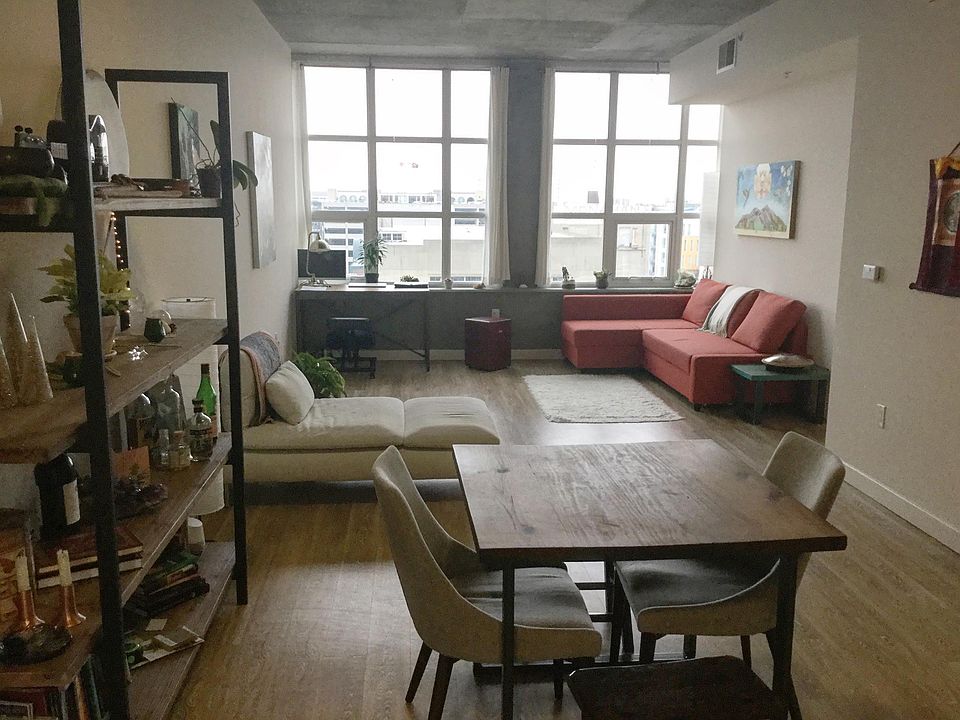 8th Floor Amazing Views of San Francisco, downtown Oakland, Located 1 block away from Amtrak station Modern apartment/loft in Aqua Via building. Lease till June 2019 w/ renew option. Wood floors, vaulted ceilings, living area is open floor plan, private master bedroom, a large den for office/ guest room/ second bedroom. Personal washer/dryer in apartment Building amenities include: secure parking garage/ 1 space included in rent, Common area Gym, "Hello Alfred", maintenance on site 24hr. Tenant responsible for Water, Gas, Electric