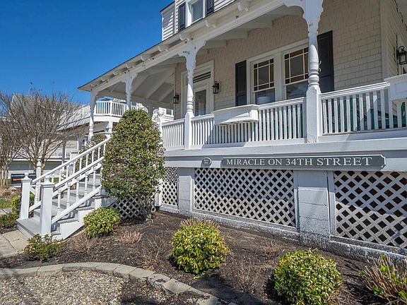 Special Offering - "Miracle On 34Th Street"! Historical Grand Victorian built in 1920. This special offering is loaded with old world charm featuring a huge wrap around covered porch with cool breezes even on the hottest days of summer. The rear patio has a large in-ground heated swimming pool and stationary pergola with awning cover. This expansive 3 story home was built for the largest of families and a classic updated summer retreat. The first floor has a foyer entrance leading to the great room, living and dining areas, modern kitchen, full hall bath and spacious primary bedroom with a handicapped accessible shower, walk in closet, stackable laundry closet, and a covered deck overlooking the pool area. The 2nd level has 3 bedrooms, a small office, oversized den/tv room, a large bathroom with 2nd set of stackable washer/dryer. Open deck off the back of the house. A circular staircase leads to the 3rd level featuring 3 spacious bedrooms, small sitting area and large bathroom. The Seller purchased the home in 1996 to share summers with their growing family of over 30 children and grandchildren. It later became their primary residence with numerous improvements over the years. Don't miss out on this Avalon gem, located 1.5 blocks to beautiful beaches and a short stroll to all the shops and restaurants that the town center has to offer. Handicap accessible ramp on the east side of the house can be removed. Settlement to occur after October 1, 2025. Seller's Property Disclosure and Exclusions listed in Associated Documents.