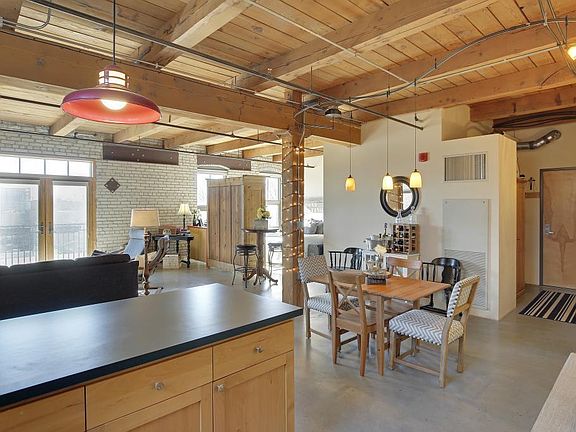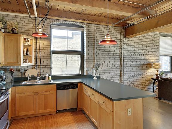 Unique true 1BR loft at historic Calumet Lofts near Central/Hennepin in NE. This sunny corner unit has stained concrete floors throughout, in-unit laundry and great exposed touches: timber beams & posts, exterior brick walls, & ductwork. The kitchen features stainless steel appliances, lots of cabinetry and a breakfast bar peninsula. Calumet Lofts offers a community room, fitness center, separate community balcony & patio in the St Anthony West neighborhood of NE Minneapolis: just across the Hennepin Ave Bridge from downtown. Included with rent: 1 outdoor reserved parking stall, 1 climate controlled storage unit, and water/sewer/trash.