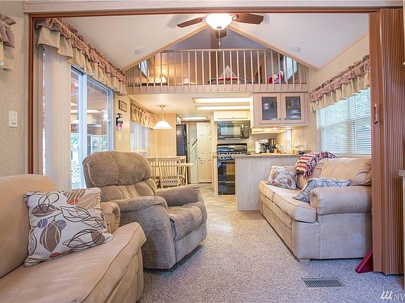 2013 Park model, with a split loft, on a 3400+ sq ft deeded lot. Can sleep 10+ on this lot with a accordion wall to make an additional private sitting area in the living space. An almost full length of trailer covered deck. Storage shed was built by Westside Building. Lot backs onto greenspace. Enough extra space to park an RV if needed on the front of the lot. Across the street from the trail toFireside Lodge. Located in the Glen at Maple Falls.